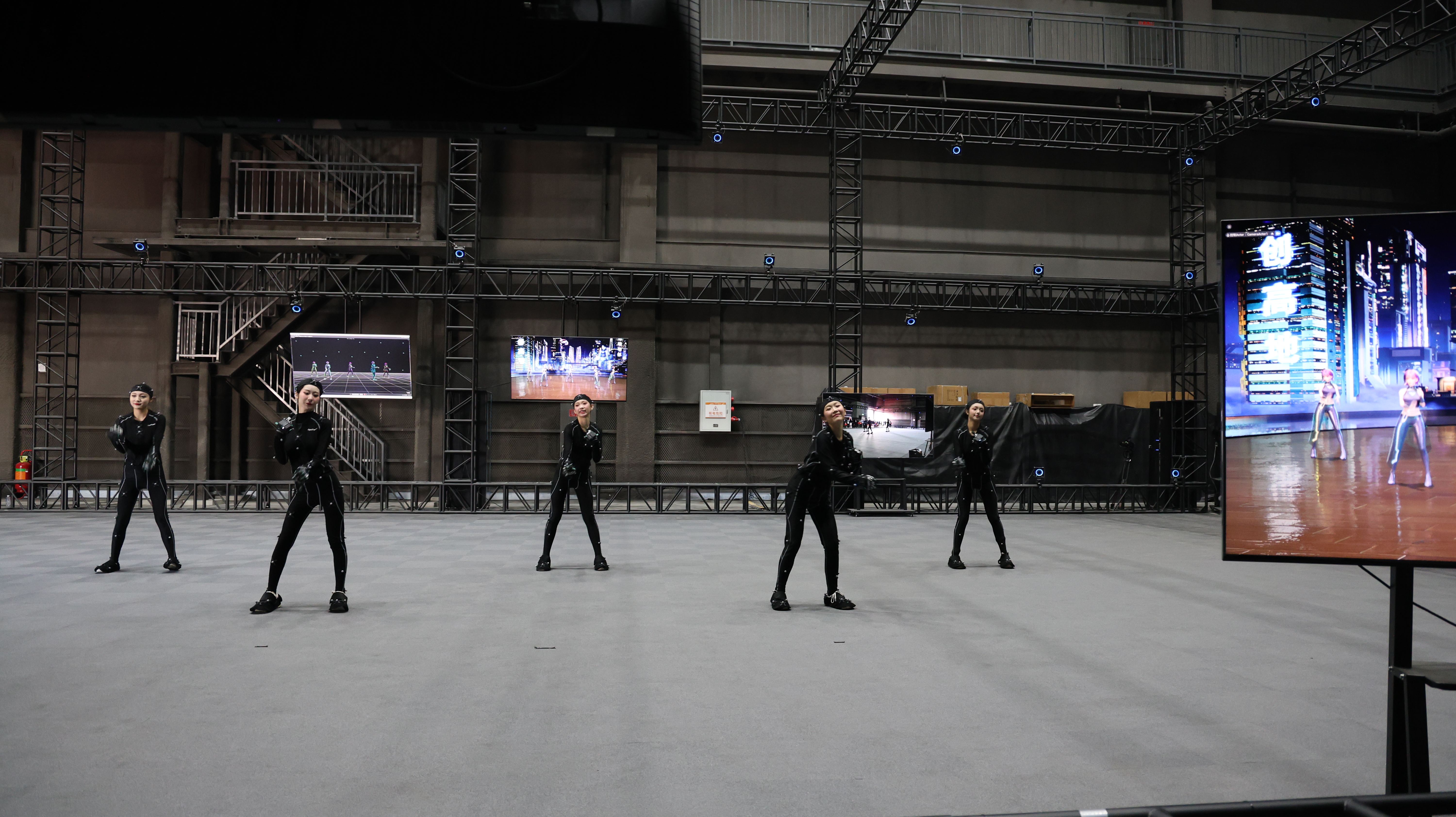 180度的LED弧形巨幕配合100平方米可升降天幕, 中央是面积超1100平方米、可360度正反转分区置景的转盘。技术人员按下启动键,摄像机实时位置被毫秒级反馈至渲染引擎,虚拟场景随镜头移动即时渲染,巨大的LED屏幕上,时空流转、场景变幻,虚拟场景与实景拍摄无缝切换。